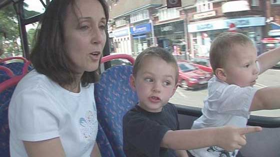 We visit accredited childminder Julie Thomas in Birmingham who looks after a pair of three-year-olds. Having noticed the children's excitement about buses, Julie builds a bus journey into her plans.