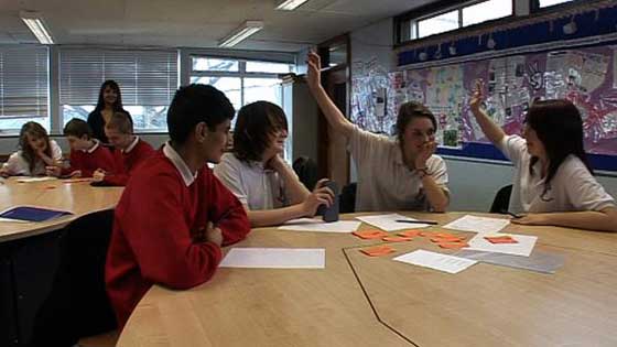 A Year 9 maths class at the President Kennedy School in Coventry are placed in mixed ability groups and set a challenging problem that involves turning data into simultaneous equations