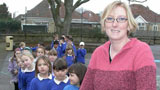 As part of a geography lesson on invaders, settlers and settlements, teacher Deborah Lord takes her...